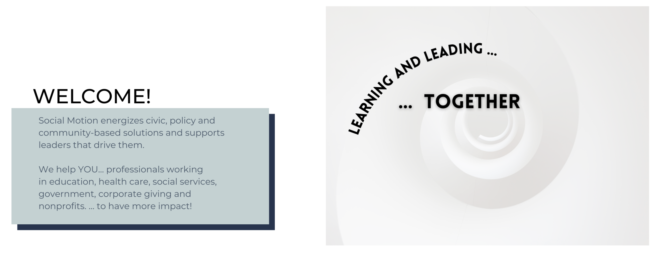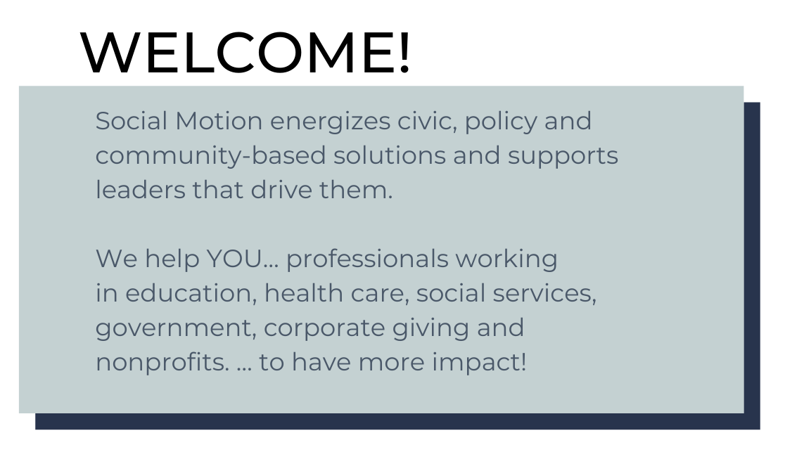 Social Motion helps leaders and helping professionals like YOU to have greater impact in your personal and professional lives so YOU can have greater impact in our communities.