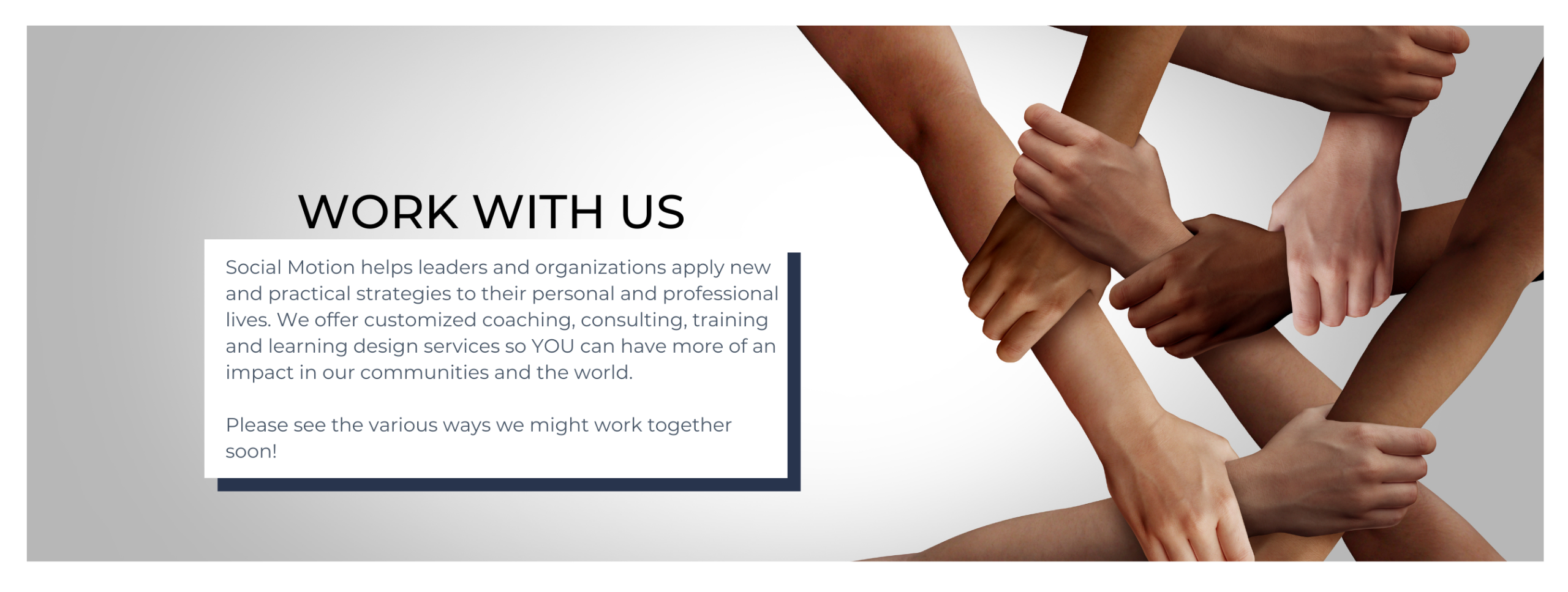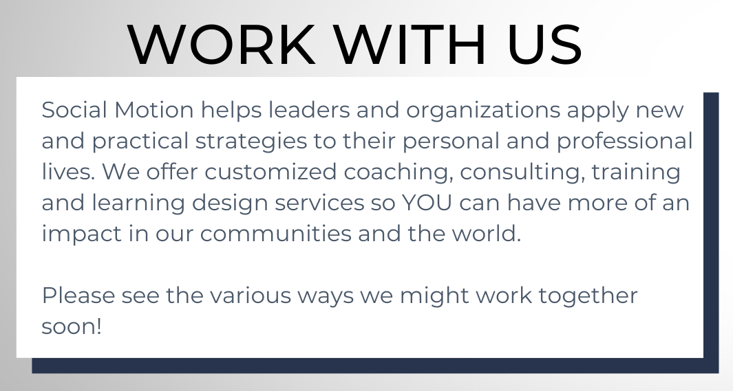 Social Motion supports organizations with professional speaking and trainings. We provide professional facilitation services for groups.
